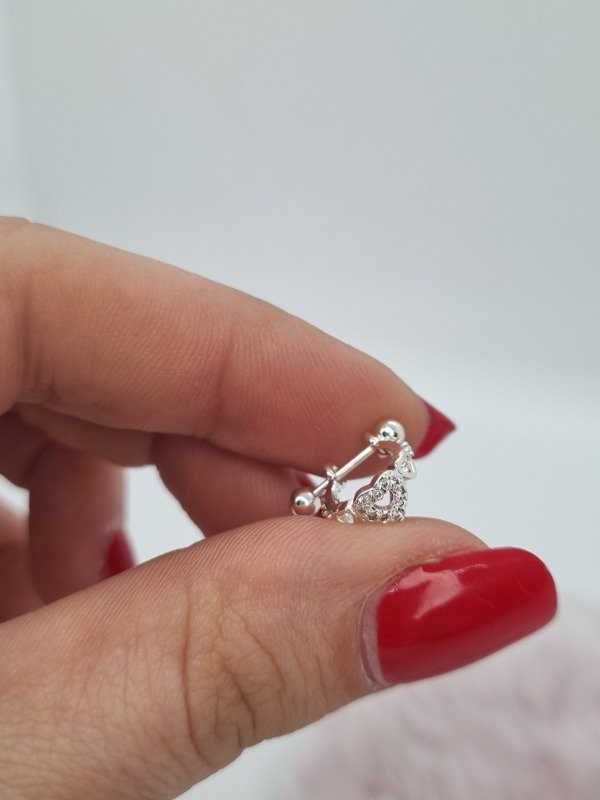 Aros acero blanco cuff argollita strass 3 corazones con barra