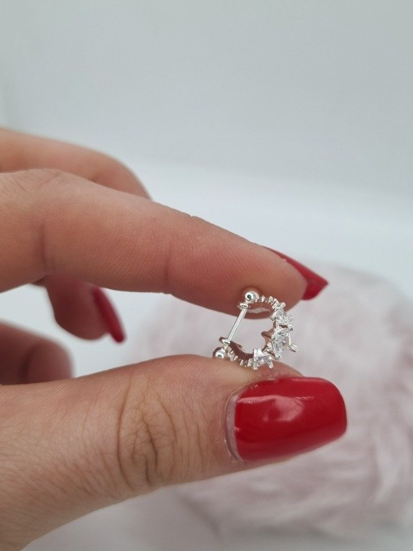 Aros acero blanco cuff argollita strass y aplique swarovski con barra