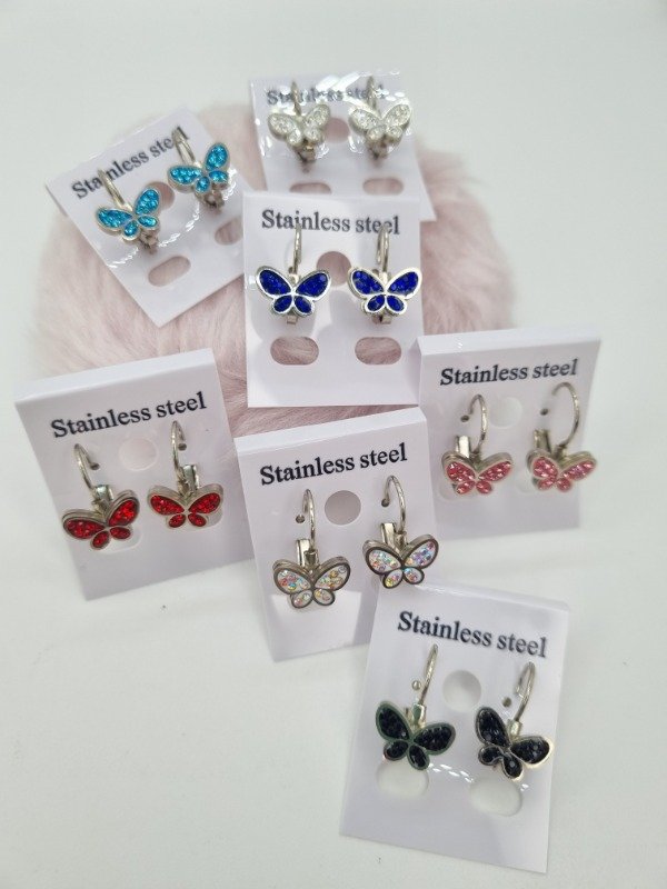 Aros acero quirurgico argollita colgante aplique mariposa strass color m2