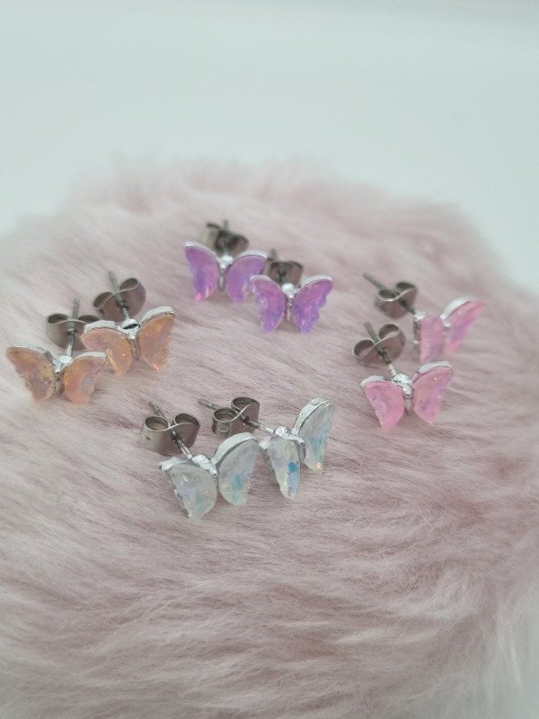 Aros acero quirúrgico pasante mariposa gema tornasol color mini