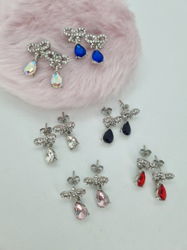 Aros acero quirurgico pasante moño strass colgante gota swarovski
