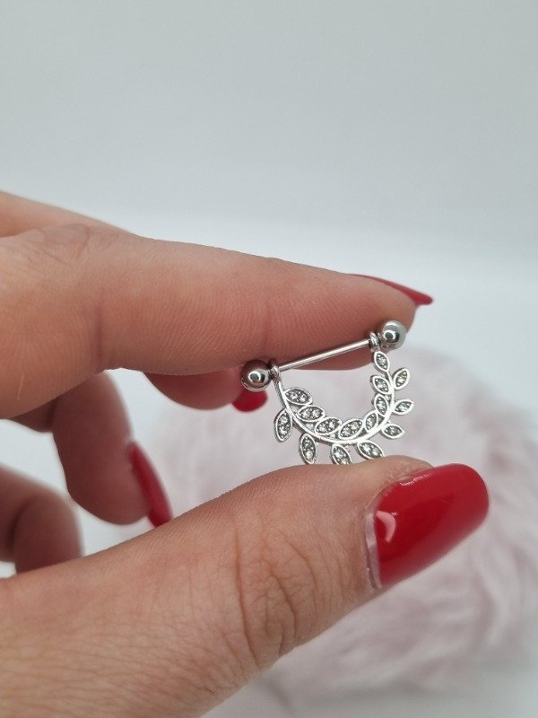 Aros acero quorurgico cuff argollita hojas con barra