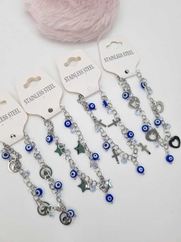 Pulsera acero quirurgico dijes ojo turco/forma plat/cristal