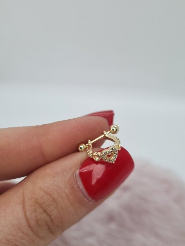 Aro acero dorado cuff argollita strass 3 corazones con barra
