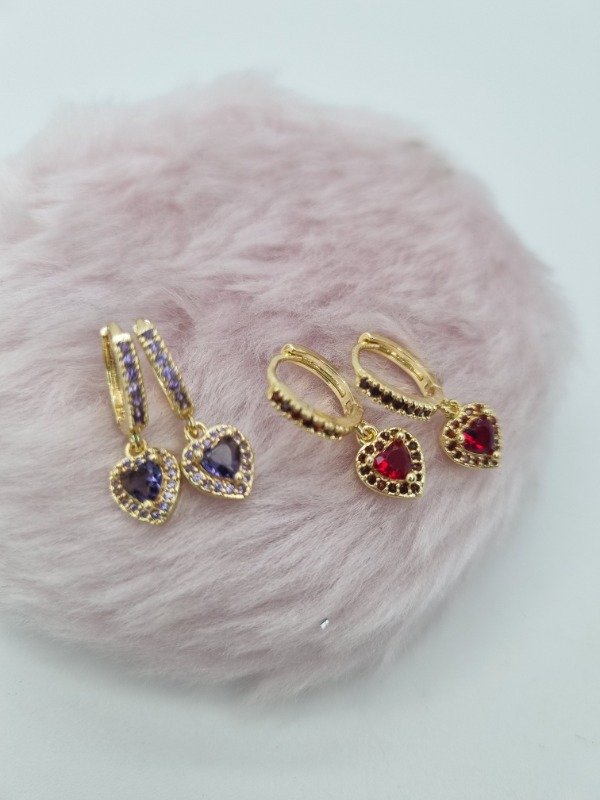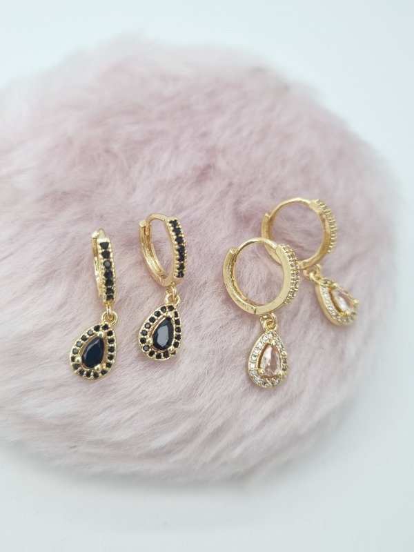 Aros acero dorado argollita strass colgante corazon/gota/cuad swarovski borde