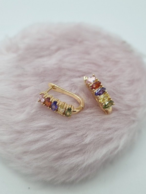 Aros acero dorado argollita strass gama colores rect