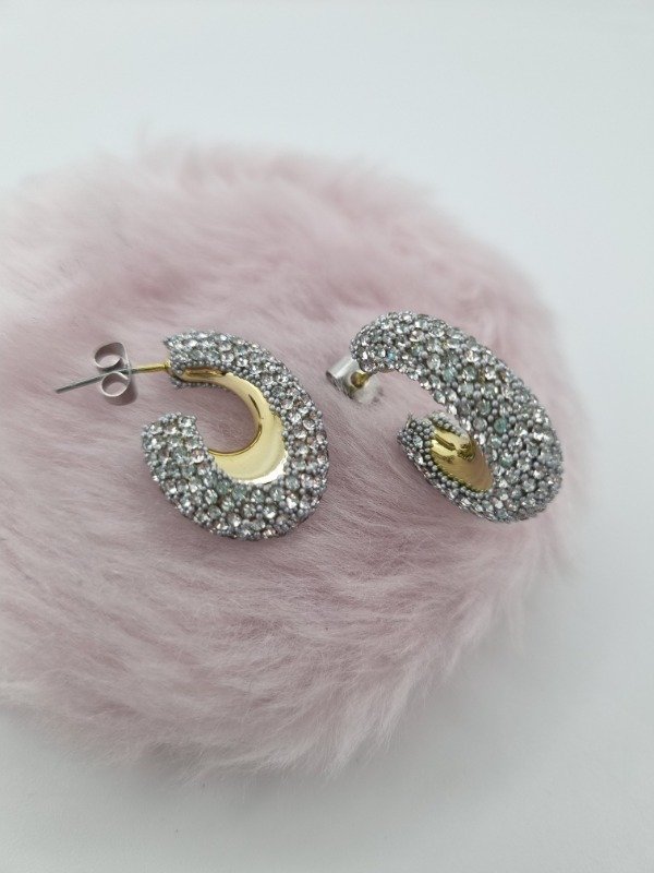 Aros acero dorado pasante semi argollit ancha text strass m2