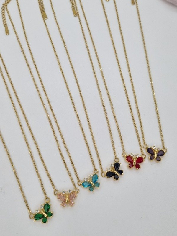 Cadena acero dorado dije mariposa mini gema