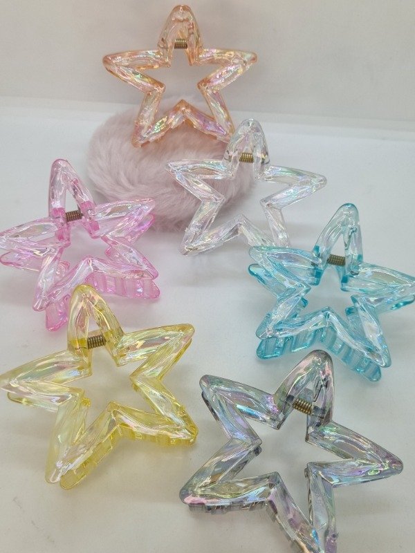 Broche plastico estrella calada color translúcido