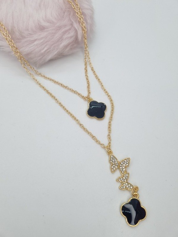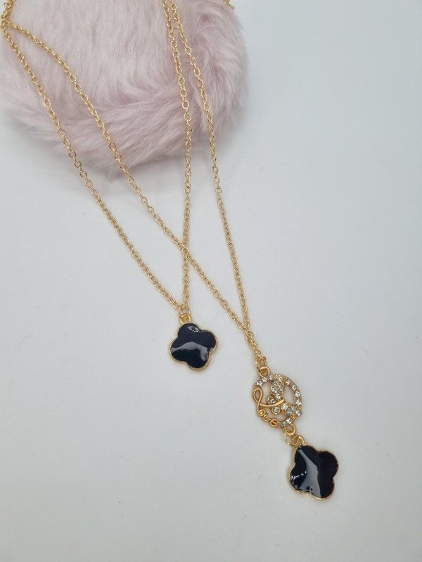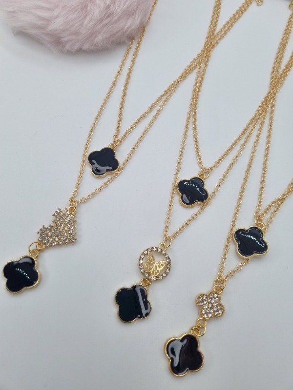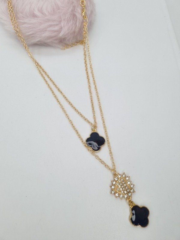 Cadena dorada fantasia doble dije van cleef negro y dije forma strass