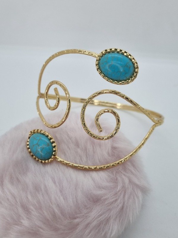 Brazalete dorado doble bucle doble piedra turquesa P1143