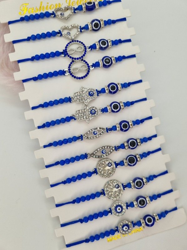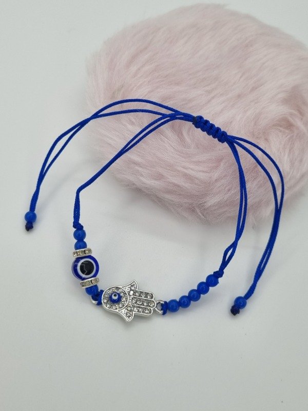 Pulseras hilo regulable ojo turco y dije plat strass proteccion