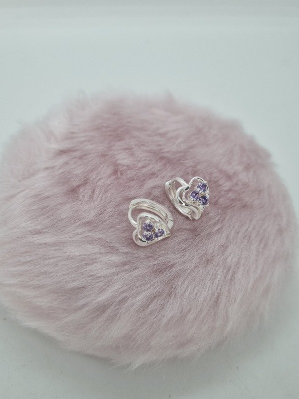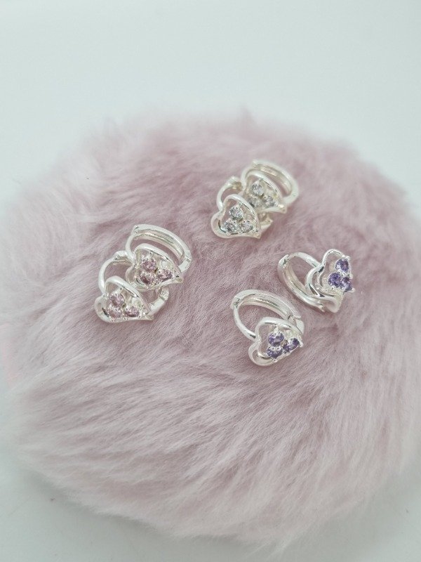 Aros acero blanco argollita aplique corazon curvo 3strass