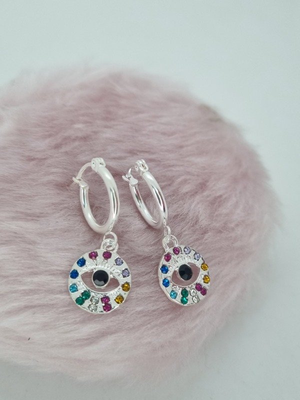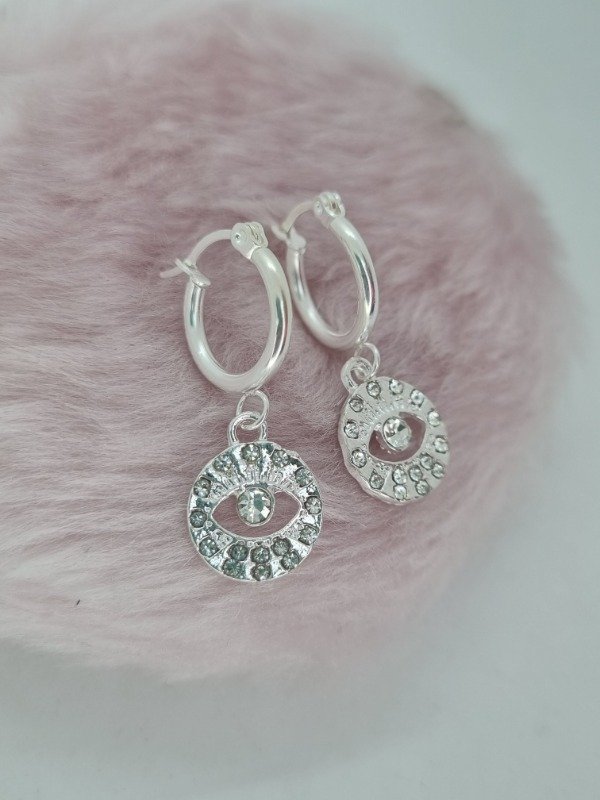 Aros acero blanco argollita colgante ojo turco strass plat/color