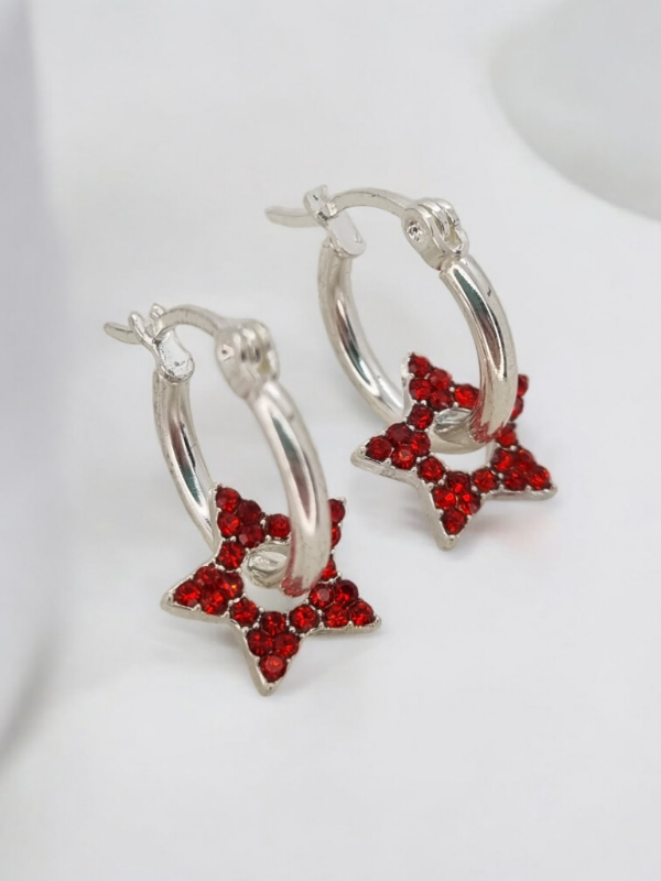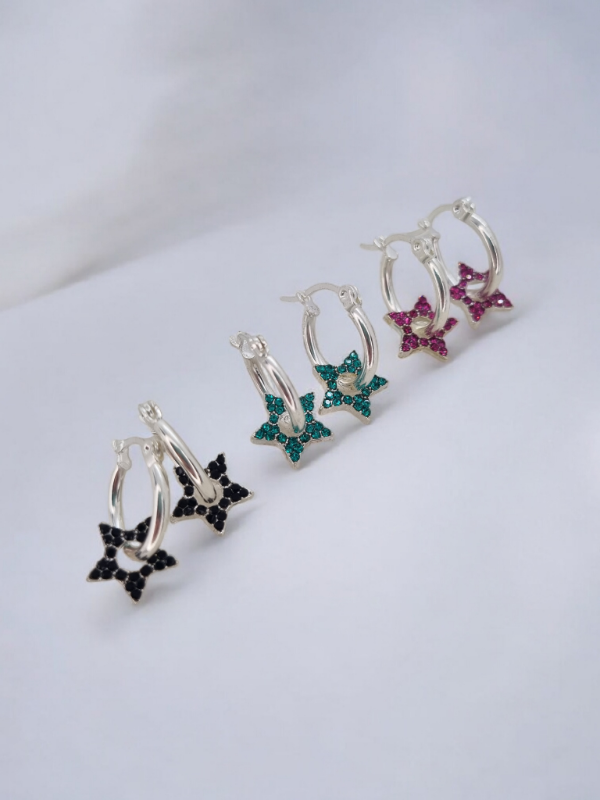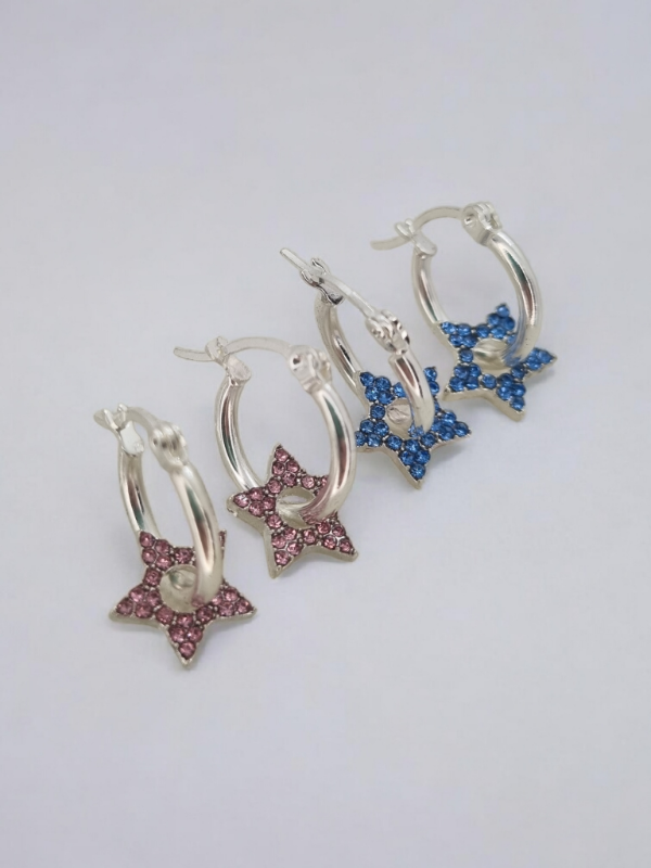 Aros acero blanco argollita cubanos dije pasante estrella strass color