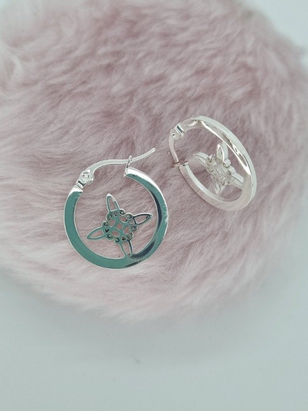 Aros acero blanco argollita plana medio nudo de bruja