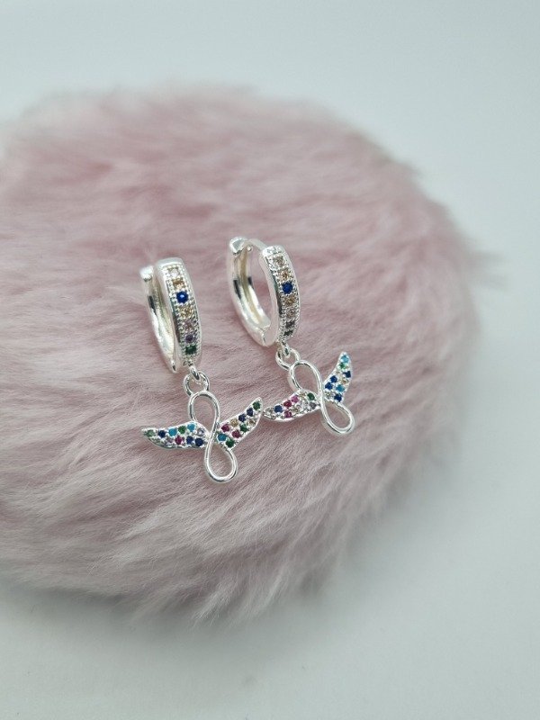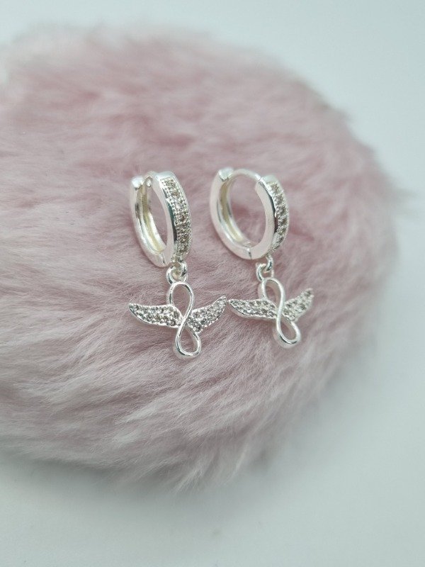 Aros acero blanco argollita strass colgante infinito con alas