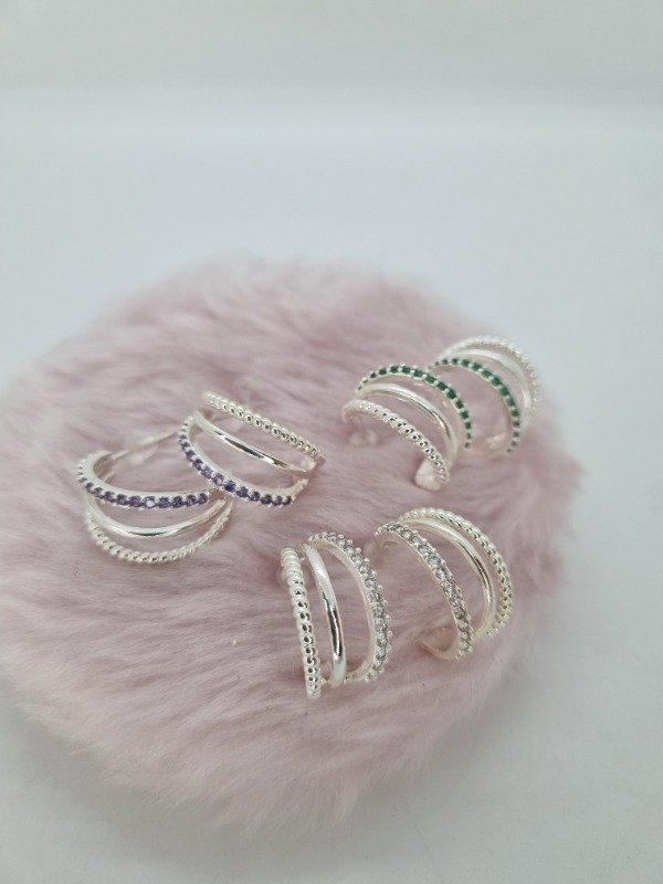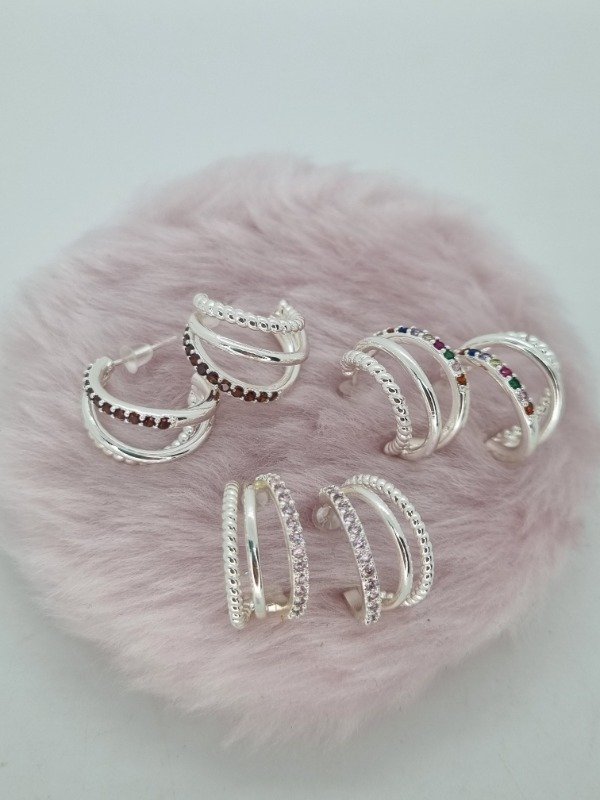 Aros acero blanco pasante triple argollita lisa/text/strass