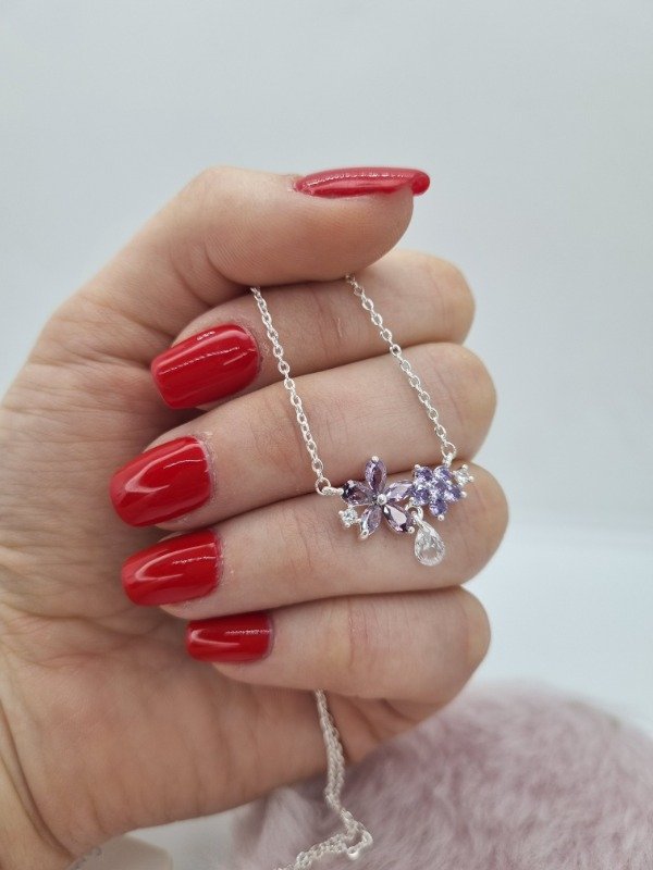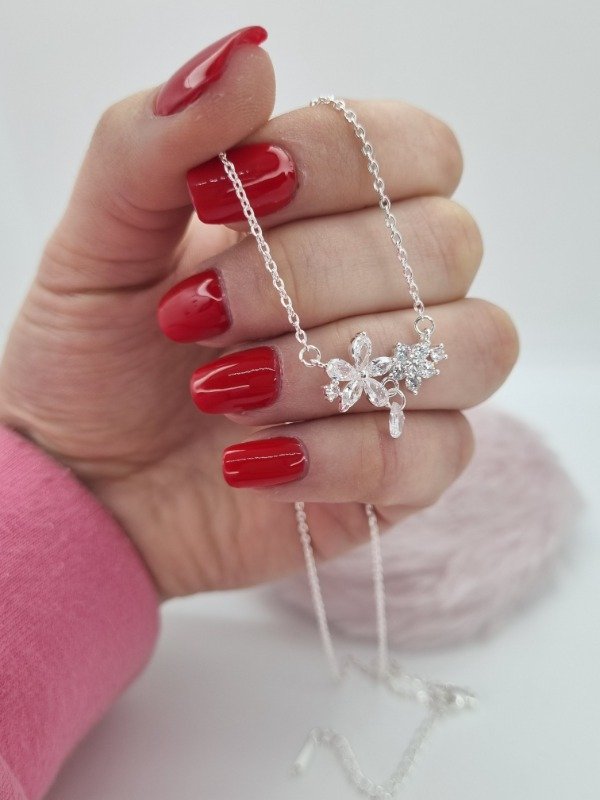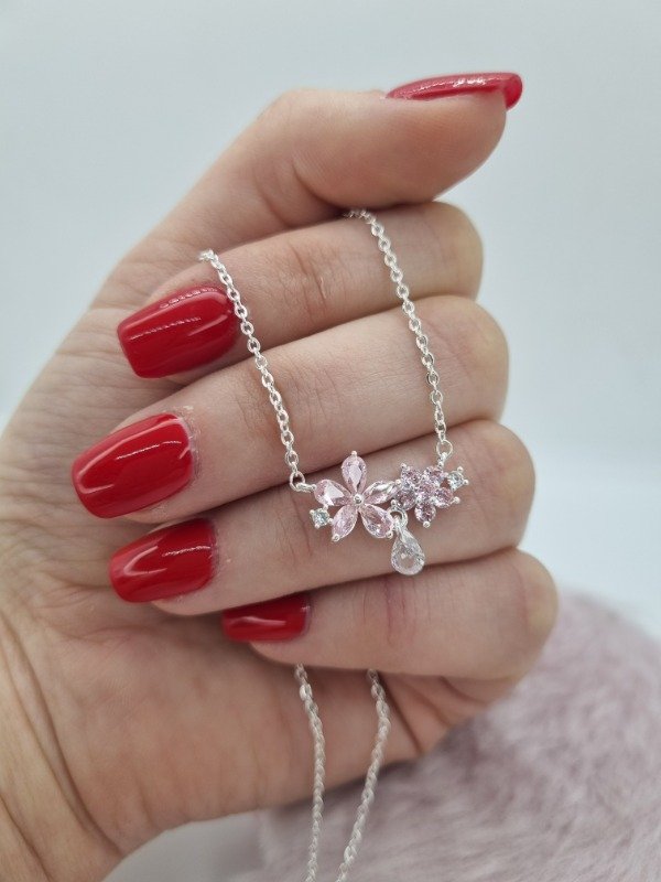 Cadena acero blanco dije doble flor y gota swarovski