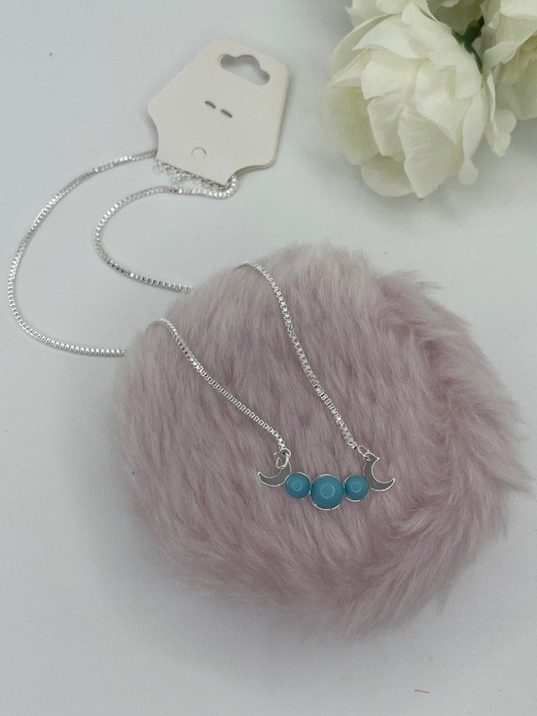 Cadena Acero Blanco dije Lunas con piedra celeste