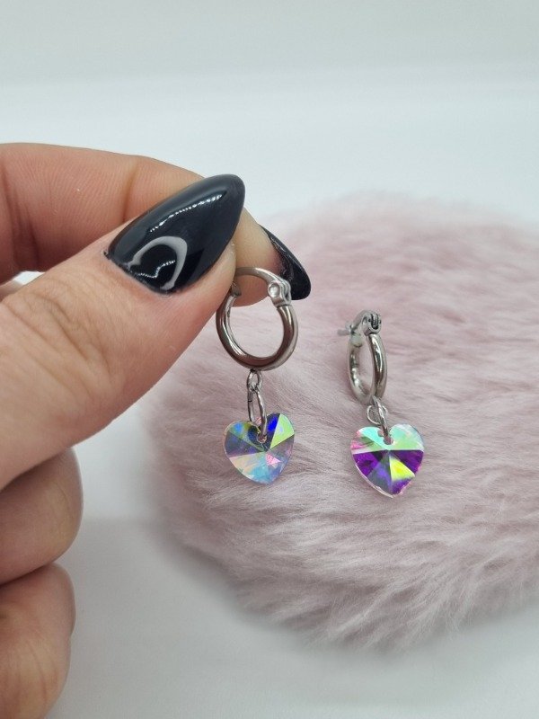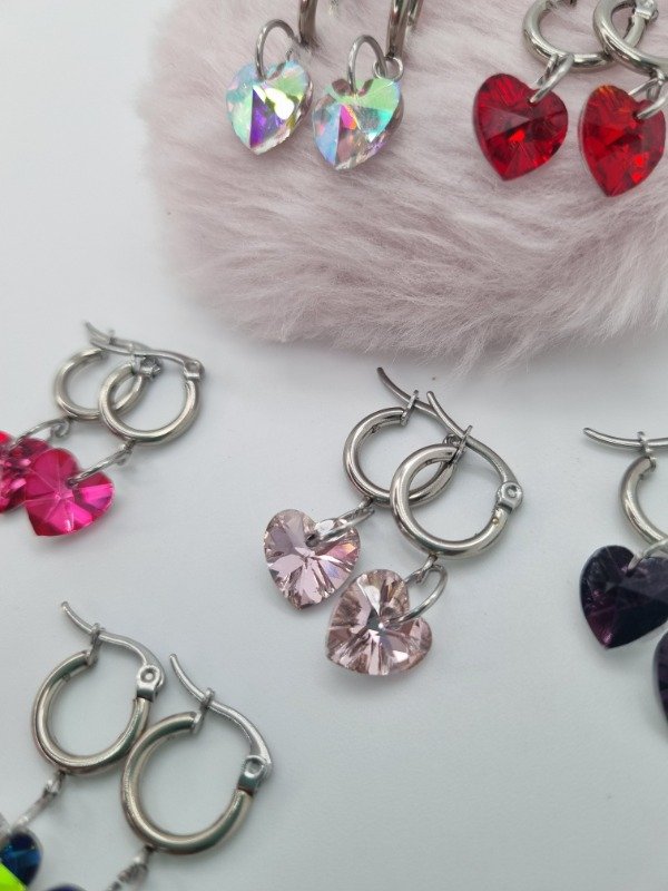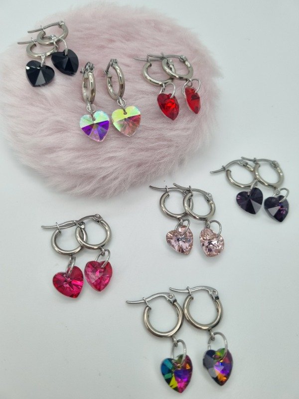 Aros acero quirúrgico argollita colgante corazon swarovski