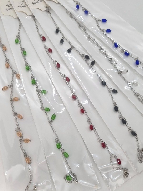 Pulsera tobillera acero quirurgico dijes ovalados color