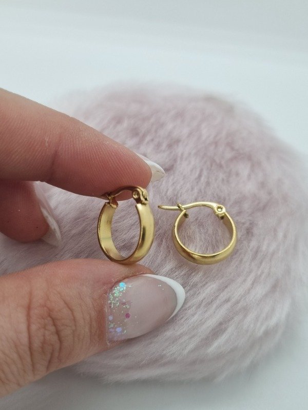 Aros acero dorado argolla ancha 10mm