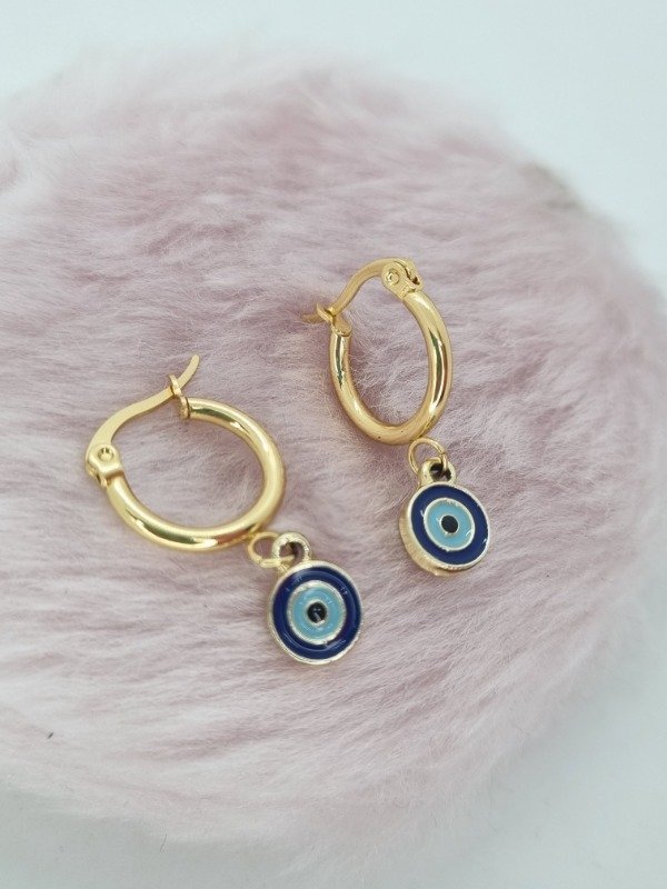 Aros acero dorado argollita colgante ojo turco esmaltado plano chico