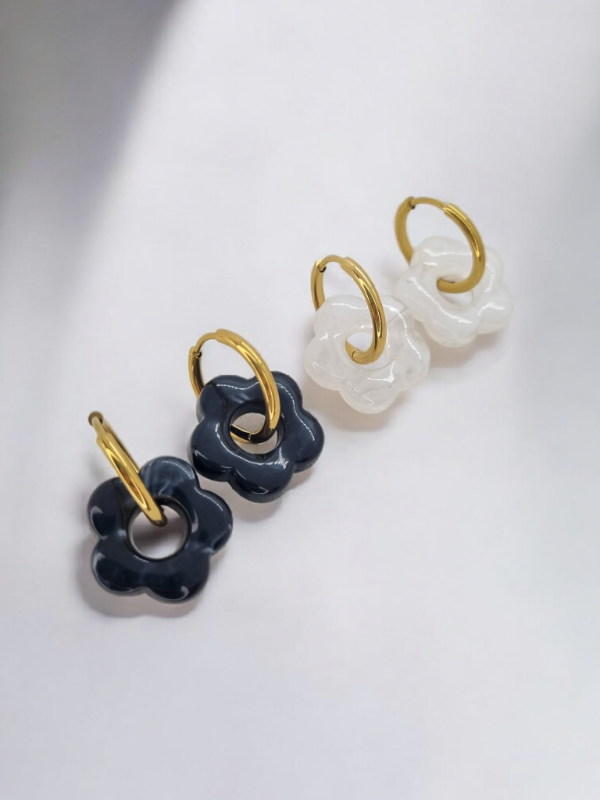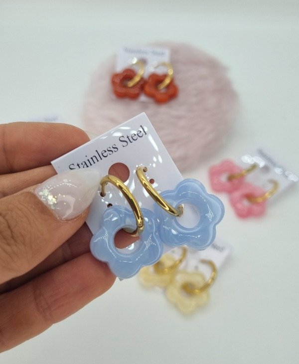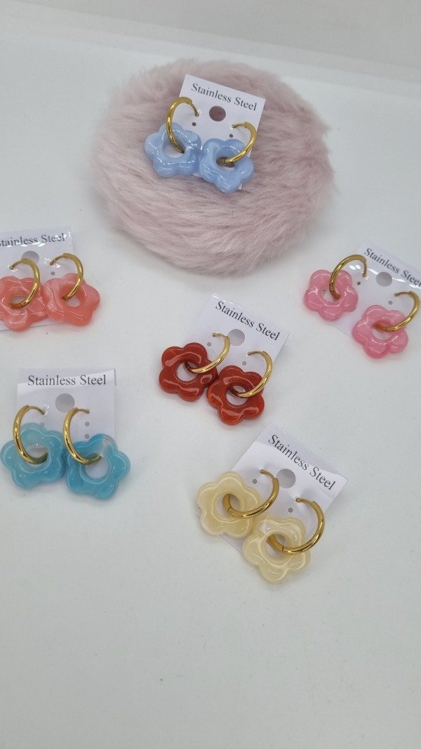 Aros acero dorado argollita cubano flor color pasante
