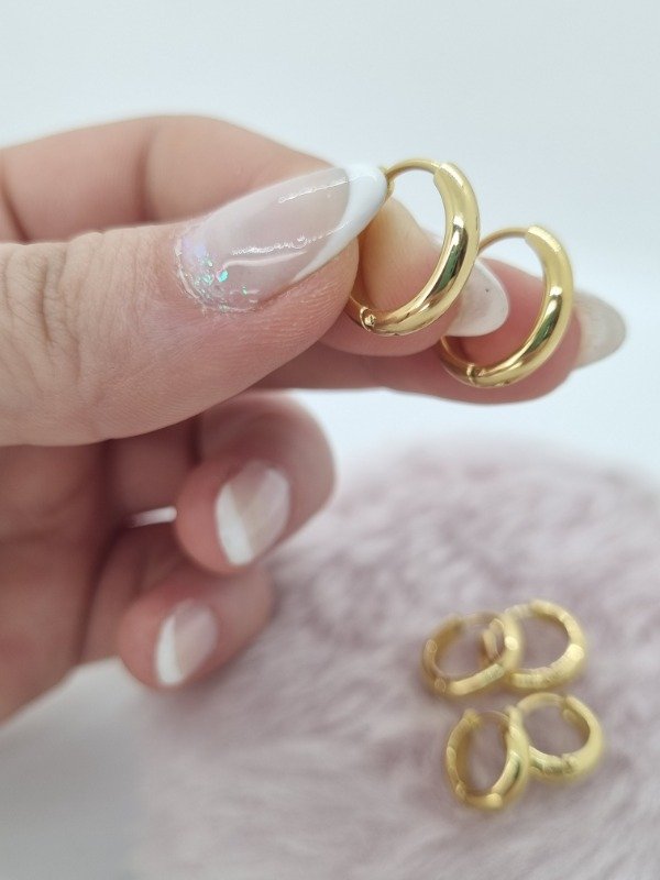 Aros acero dorado argollita cubano lisa mini med gde ancho2
