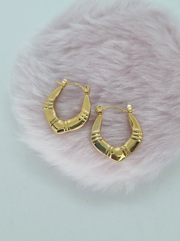 Aros acero dorado argollita inflada text 12 rayas