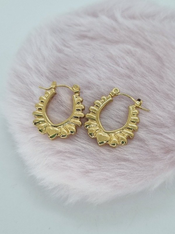 Aros acero dorado argollita inflada text corazon/curvy