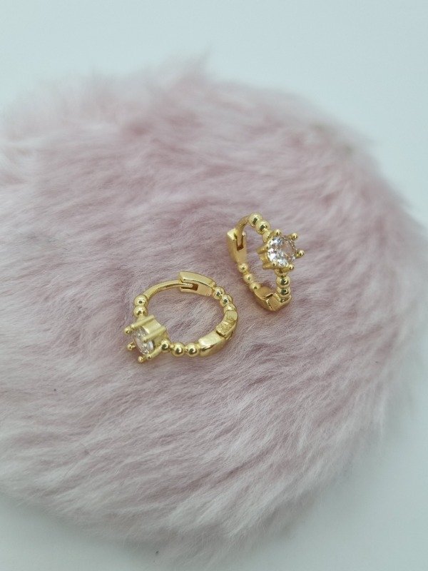 Aros acero dorado argollita pelotitas aplique swarovski bco