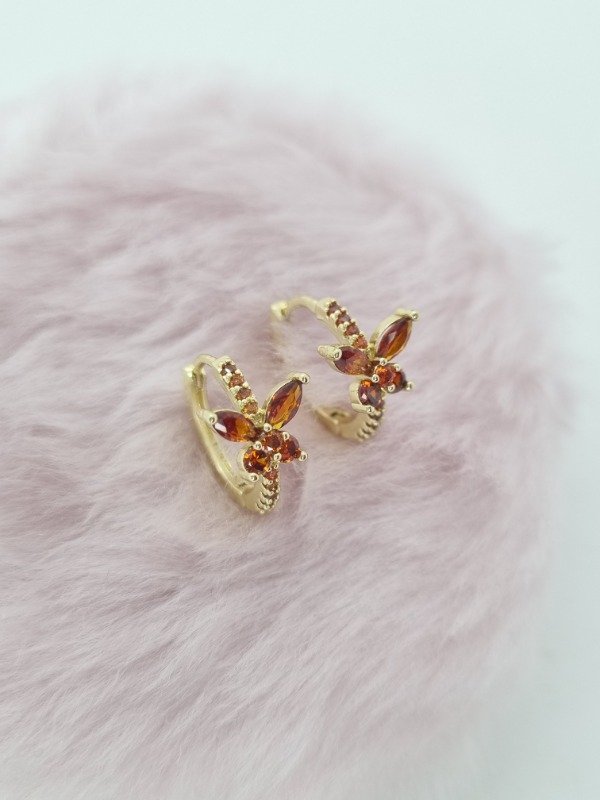 Aros acero dorado argollita strass color aplique mariposa gema color