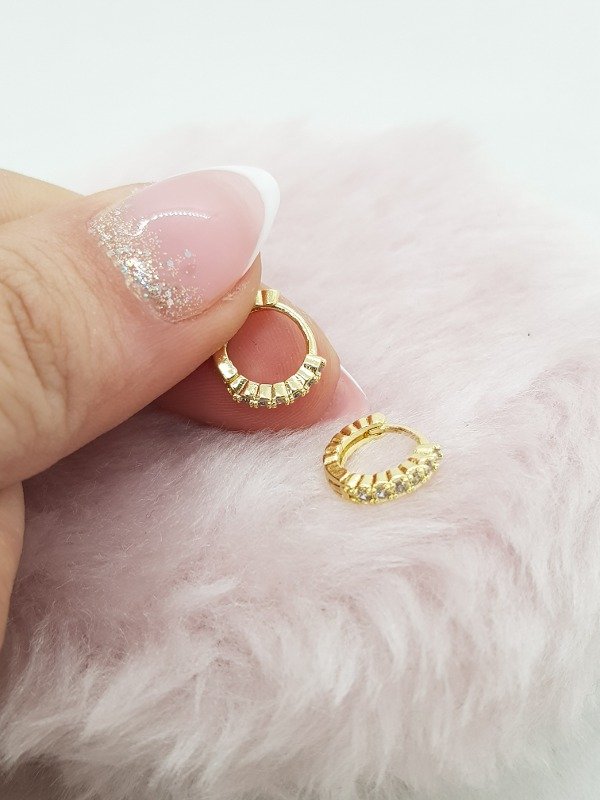 Aros acero dorado argollita strass mini