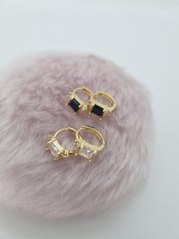 Aros acero dorado argollita text aplique swarovski rect