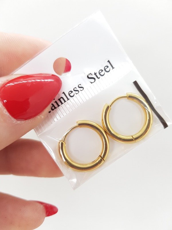 Aros acero dorado cubanos inflado med y gde