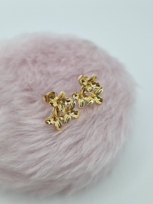 Aros acero dorado pasante 3flores dor plana