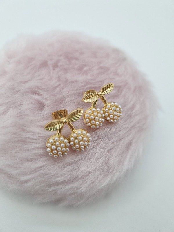 Aros acero dorado pasante cherry dorado perlitas