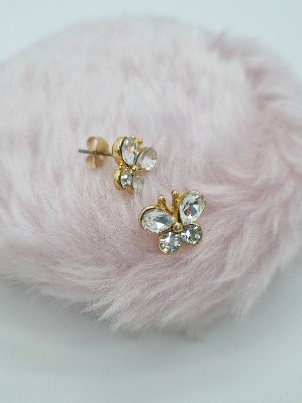 Aros acero dorado pasante mariposa gema plat redonda