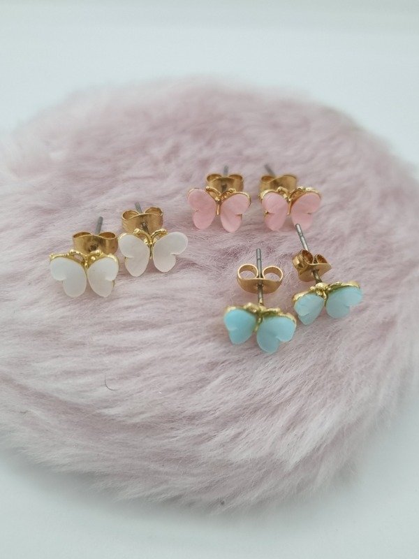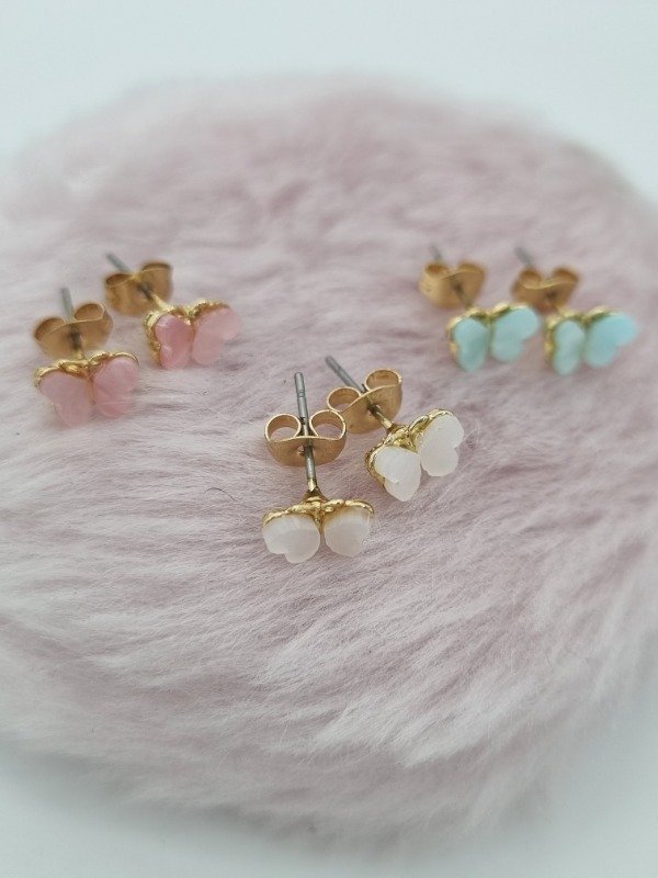 Aros acero dorado pasante mariposa nacar color mini nro0