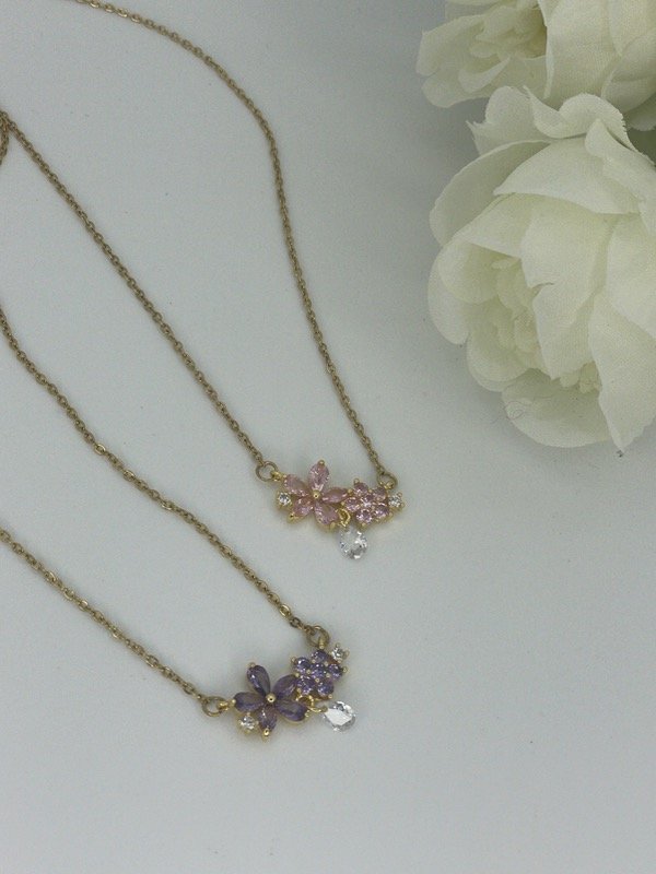 Cadena Acero Dorado con duje doble flor y gota Cristal