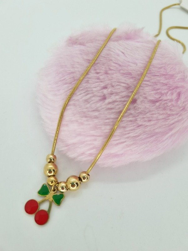 Cadena acero dorado pelotitas dije cherry esmaltado